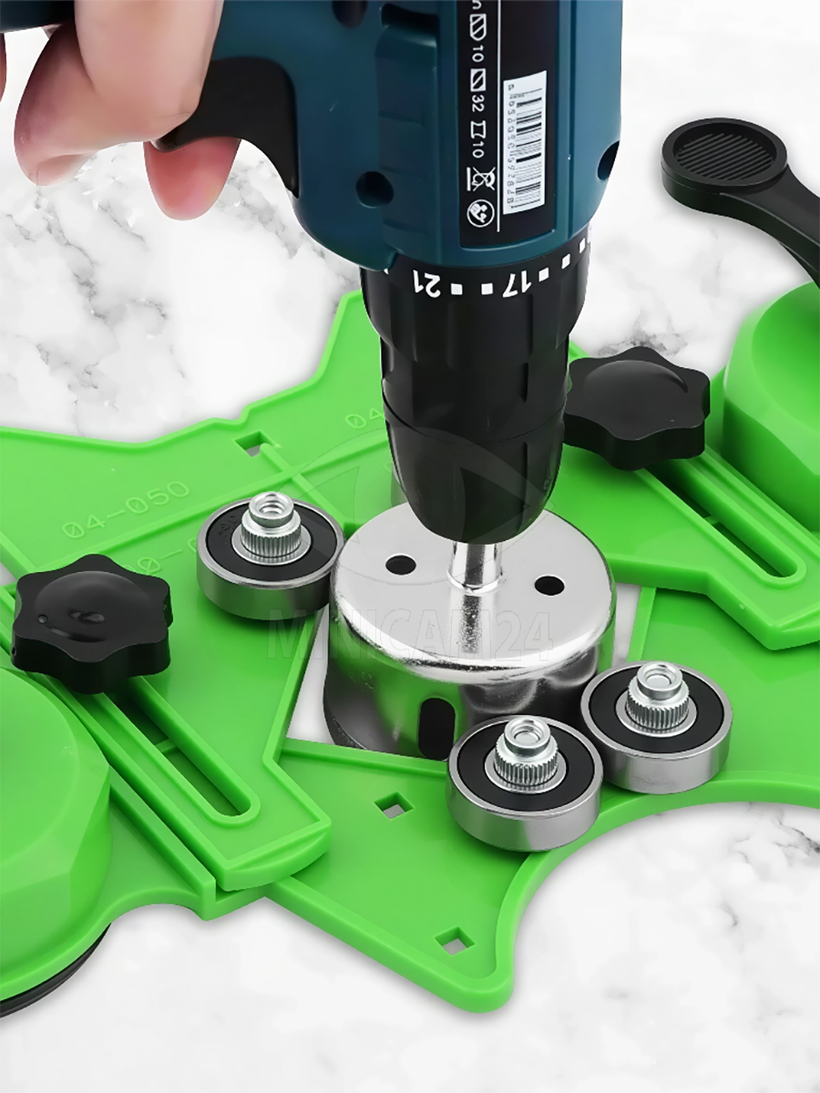 Вакуумный кондуктор для сверления плитки и стекла Vakuro PL с набором алмазных коронок 15 шт.